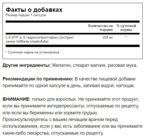 L-5 HTP (L-5 гидрокситриптофан) (экстракт семян Griffonia simplicifolia)