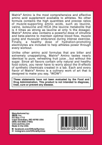 У вас возникли проблемы с поиском аминокислотной добавки, которая была бы такой же вкусной и освежающей, как и эффективной? Тогда ваши поиски окончены! Syntrax Matrix представляет собой смесь аминокислот BCAA, которая помогает восстановить критические аминокислоты и электролиты, и имеет вкус, который почти идентичен фруктовым сокам, только без сахара. Более того, Matrix Amino намного эффективнее, чем другие смеси аминокислот на рынке, благодаря высокому и ценному количеству BCAA и аминокислот, а также уникальным ингредиентам, таким как HICA. HICA — это метаболит лейцина, который почти в 4 раза сильнее лейцина, даже в меньшей дозировке! А с электролитами в Syntrax Matrix Amino вы будете чувствовать себя обновленным и наполненным до, во время или после каждой тренировки, потому что вы можете принимать его в любое время дня! А Matrix Amino производится без искусственных красителей. так что вы знаете, что получаете чистую, эффективную добавку BCAA. Благодаря всем этим преимуществам и 6 восхитительным фруктовым вк