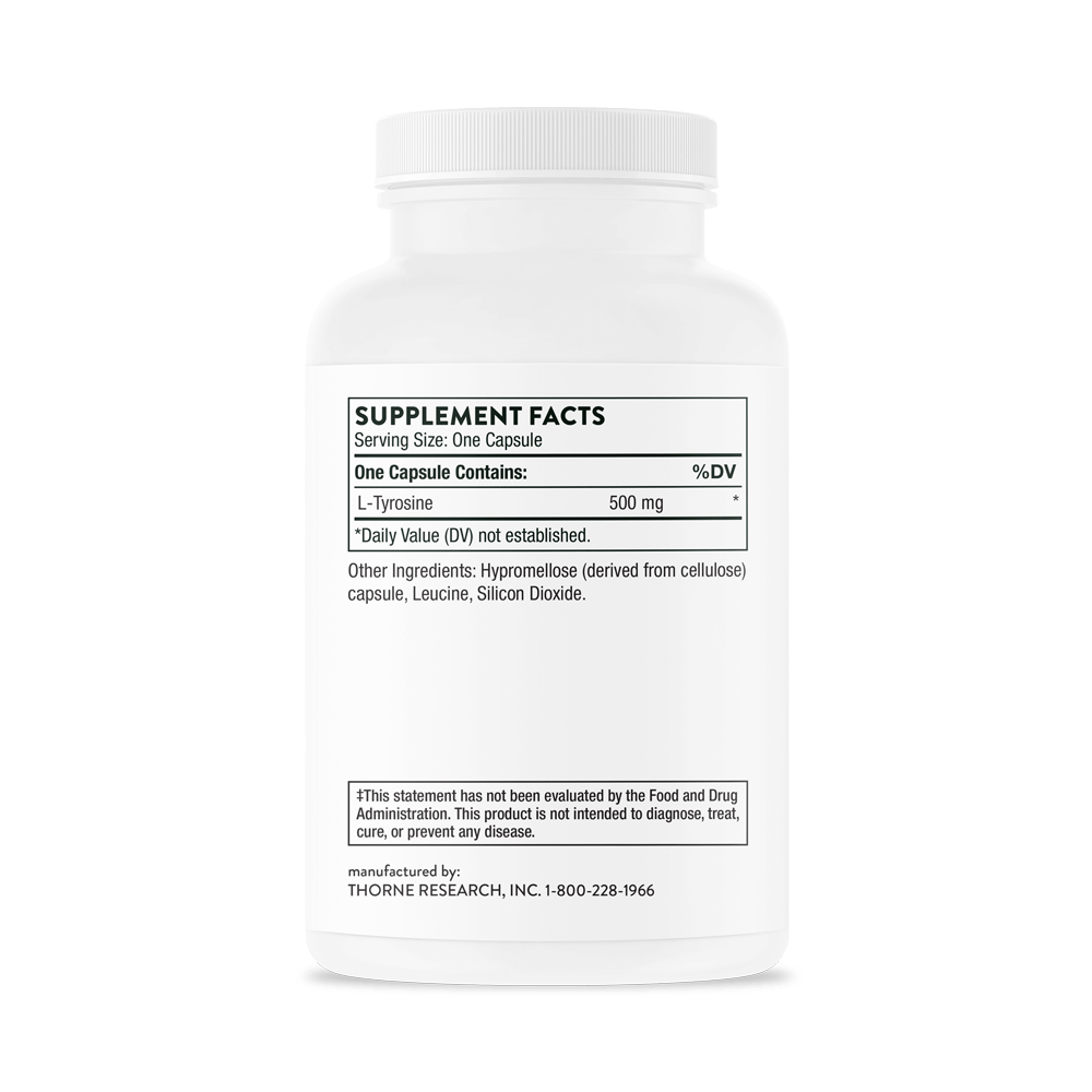 L-тирозин способствует выработке организмом нейротрансмиттеров (химических веществ мозга) и гормонов щитовидной железы, а также способствует здоровому управлению стрессом. Он также помогает поддерживать здоровую функцию надпочечников.