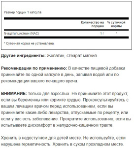 С NAC дышать легче! Это уникальное производное аминокислоты L-цистеина находится в тренде, и на то есть веские причины. Он обеспечивает мощную поддержку как для здоровья дыхательных путей, так и для детоксикации. Swanson NAC предлагает 1000 мг N-ацетилцистеина на порцию для поддержания нескольких систем организма в целом. NAC (N-ацетилцистеин) способствует здоровой дыхательной функции благодаря своим антиоксидантным свойствам. NAC также стимулирует выработку глутатиона, главного антиоксиданта организма. Здоровый уровень глутатиона помогает организму бороться с окислительным стрессом от свободных радикалов, поддерживает функцию иммунной системы и может даже способствовать здоровому старению. NAC также поддерживает здоровый уровень глутамата, нейротрансмиттера, который играет центральную роль в обучении, поведении и памяти. Кроме того, NAC и глутатион поддерживают пути детоксикации организма для здоровой функции печени. Поддержите свои легкие, печень, иммунитет и многое другое с помощью NAC от Swanson.