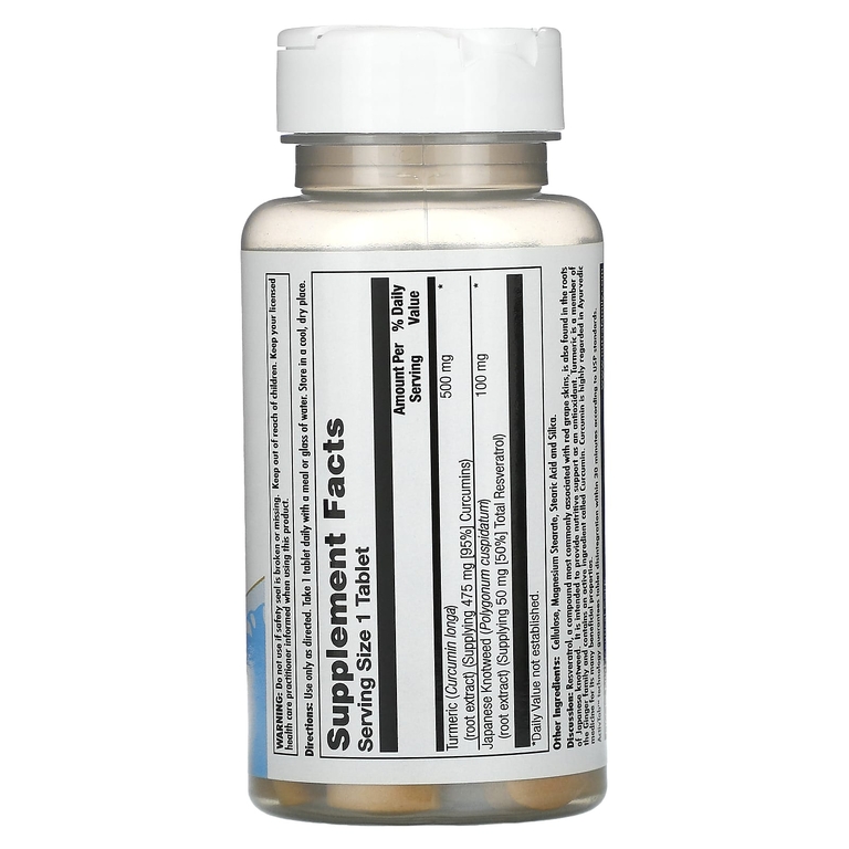 Turmeric Resveratrol от KAL – биодобавка, поставляющая в организм два сильных природных соединения. Входящая в состав БАДа куркума – источник куркумина, известного уже много столетий как противовоспалительное, антибиотическое, обезболивающие, противоопухолевое средство. Корень японского горца дает организму вещество ресвератрол с мощным антиоксидантным действием.