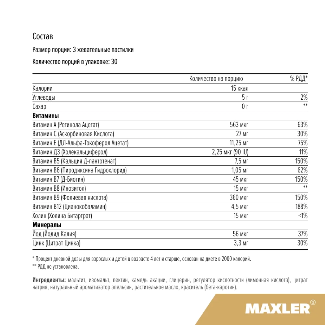 Maxler Multivitamin Gummies (Мультивитамины) применяется для здоровья детей, в том числе при значительных умственных и физических нагрузках. Комплекс помогает зубам и костям оставаться прочными и здоровыми, позволяет мышцам, связкам и стенкам сосудов расти вместе с организмом и оставаться эластичными. Может применяться для лечения и предотвращения травм, в периоды стрессов, экзаменов, при занятиях спортом или в период простуд. Комплекс влияет на здоровье сердца, предотвращая аритмию и тахикардию. Также позволяет функционировать нервной системе без спазмов, боли, судорог, без раздражительности, хронической усталости и апатии, улучшает концентрацию и внимание.