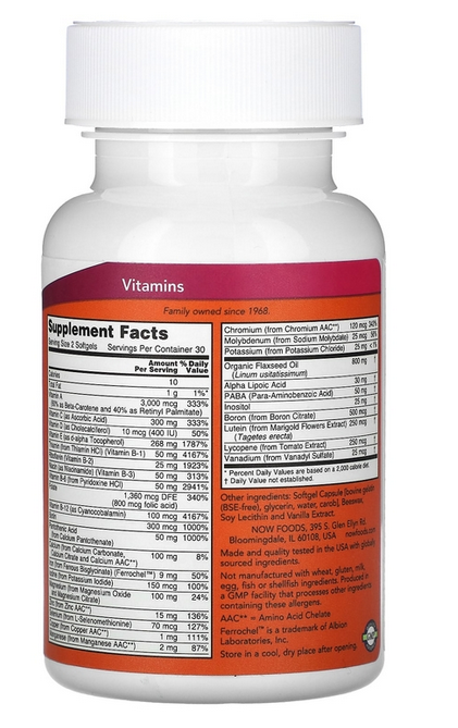 Витамин A (60% в виде бета-каротина и 40% в виде ретинилпальмитата)