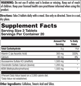 KAL Glucosamine Chondroitin MSM (Глюкозамин Хондроитин МСМ) 1500/1200/1500 мг содержит органическую серу, полезное действие которой усилено глюкозамином и хондроитином. Комплекс поддерживает здоровье суставно-связочного аппарата, помогает с профилактикой и лечением суставных заболеваний.