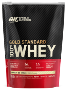 Optimum Nutrition 100% Whey Gold Standard – добавка на основе сывороточного протеина с приятным вкусом для увеличения мышечной массы и препятствия ее потери. Также стабилизирует давление и помогает расщеплять жиры. Не позволяет жировой прослойке увеличиваться, снижает аппетит.