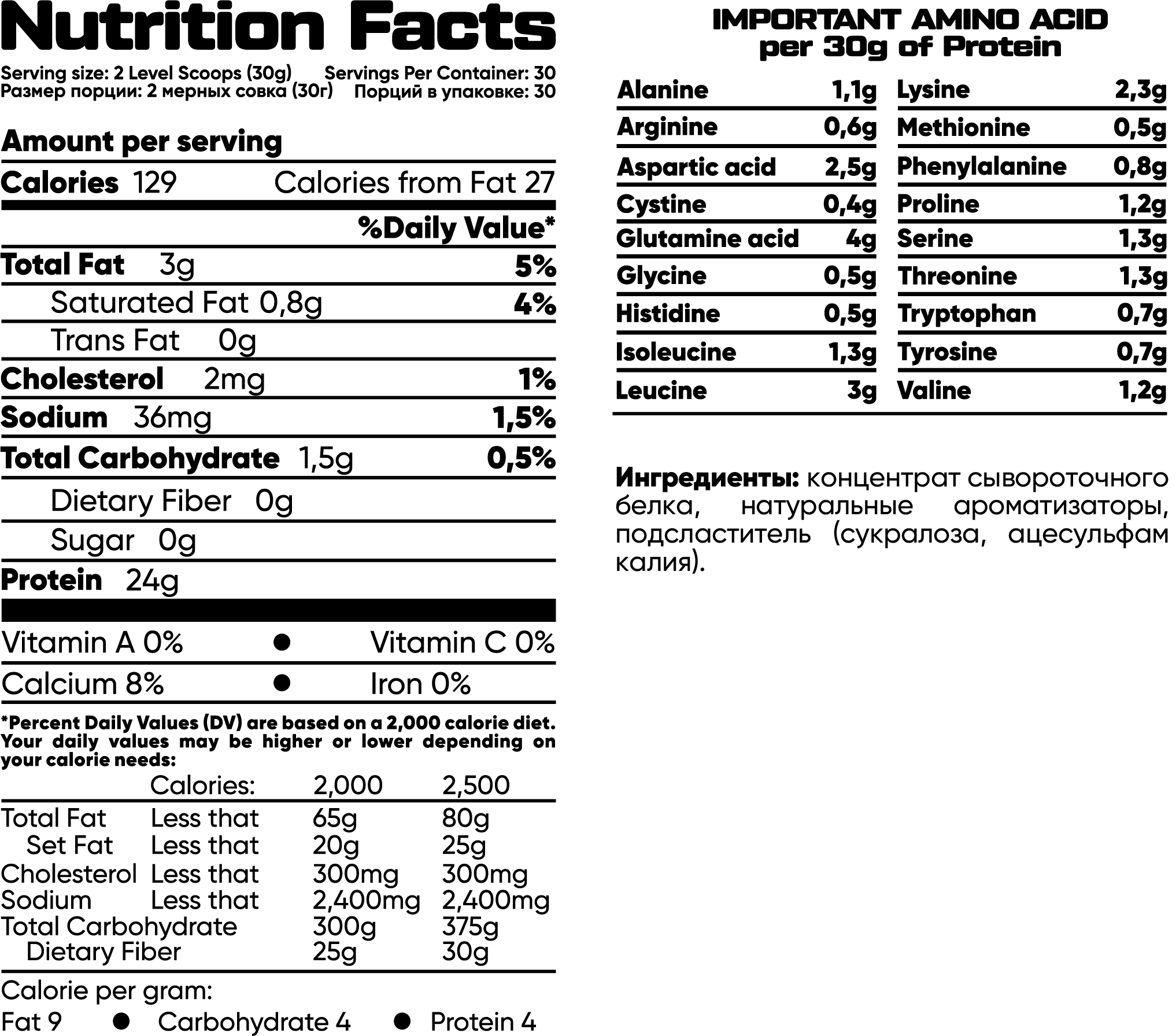 Белки — основной «ингредиент» для роста мышц. Сывороточный концентрат легко усваивается, поэтому PRO WHEY станет незаменимой частью рациона каждого спортсмена. Это рабочий продукт независимо от спортивных целей, набираете вы мышечную массу или сжигаете жировую. Протеиновый коктейль PRO WHEY помогает поддерживать необходимый уровень белка и запас энергии со вкусом.