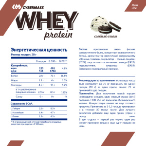 Whey Protein — сывороточный протеин от CYBERMASS. Это протеиновая смесь сывороточного концентрата и изолята. Протеин сыворотки – лучший в стимуляции мышечного роста благодаря полноценному аминокислотному профилю и большому содержанию ВСАА! Произведен из высококачественного европейского сырья, в частности, из сыворотки от компании Arla.