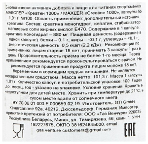 Maxler Creatine Caps 1000 (Креатин 1000) может использоваться для роста мышечной массы. Препарат позволяет развить выносливость и выполнить больше подходов в ходе тренировке. Именно за счет этого и происходит рост мышечной массы, эффект проявляется лишь в сочетании с физическими нагрузками. Также обладает противоопухолевой активностью, позволяет проработать наполненные водой, красиво очерченные мышцы.