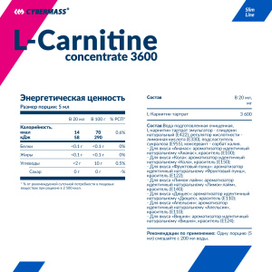 вода подготовленная, глицерин натуральный, лимонная кислота, л-карнитин (фармацевтический), натуральный и идентичный натуральному ароматизатор, сорбат калия