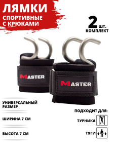 Лямки MASTER с крюками подходят для упражнений всех видов. Выполненные из прочной ткани со стальными крюками, лямки улучшают хват, позволяют увеличить вес и лучше сосредоточиться на технике и проработке целевых групп, а не на удержании снаряда в руках. Считается, что мышцы рук устают быстрее, поэтому использование лямок позволит лучше нагрузить мышцы спины. Также рекомендуется использовать лямки на каждой второй или третьей тренировке.