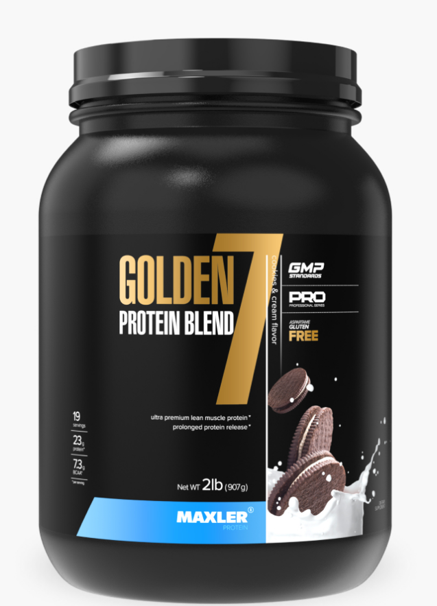 Протеин Maxler Golden 7 Protein Blend – качественный протеин с 7 источниками белка, которые обеспечивают постоянную поддержку мышц. Обеспечивает взрывной мышечный набор, служит долгосрочным источником энергии, запускает процессы регенерации в мышцах после тренировок.