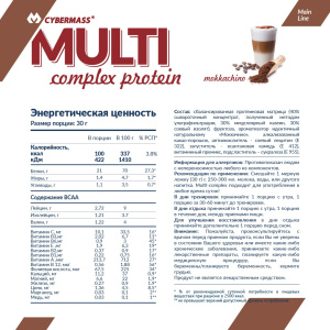 Multi-complex обладает сбалансированной 3-х компонентной белковой матрицей премиум-класса с различной скоростью усвоения, созданной с учетом современных тенденций и потребностей в обеспечении организма аминокислотами. Благодаря сочетанию быстро и медленно-усваиваемых белков Multi-complex начинает усваиваться уже через час после приема и действует до 8 часов, питая и насыщая ваши мышцы!