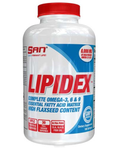 Lipidex использует специфическую смесь из льняного масла, масла семян огуречника, конъюгированной линолевой кислоты и рыбьего жира, чтобы стать лучшим и более эффективным источником Омега 3, Омега 6 и Омега 9 незаменимых жирных кислот. Эта особенная комбинация EFAs и есть секрет приобретения превосходного здоровья, что позволит Вам нарастить мускулы и сжечь жир легче, чем когда бы то ни было. CLA находится в большом количестве в мясе, однако содержание насыщенных жиров в мясе не оправдывает получение достаточного количества CLA из этого источника. С другой стороны, CLA определенно улучшает способность организма использовать жир в качестве предпочтительного источника энергии, а также, как было доказано, увеличивает силу, венозность и мускульный объем. С каждой порцией Lipidex Вы получаете колоссальную 3000 мг дозу.