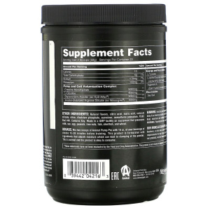 Animal Pump Pro от Universal Nutrition - хотя этот продукт попадает под классификацию предтренировочного комплекса, но это очень знаковый продукт для компании,в котором они постарались передать ощущение физического пампинга и в тоже время удовольствия от тяжелой работы в тренажерном зале,которое стимулирует к возращению опять и опять. Продукт был создан в сотрудничестве с IFBB Pro и известным в спортивных кругах диетологом Джоном Джеветтом, благодаря которым появилась эффективно дозированная формула, дающая максимальную производительность, пик концентрации и накачки. Без стимуляторов и кофеина. Вообще эта формула состоит из двух синергичных и активных формул это Pump and Cell Volumization Complex + Energy and Focus Matrix.