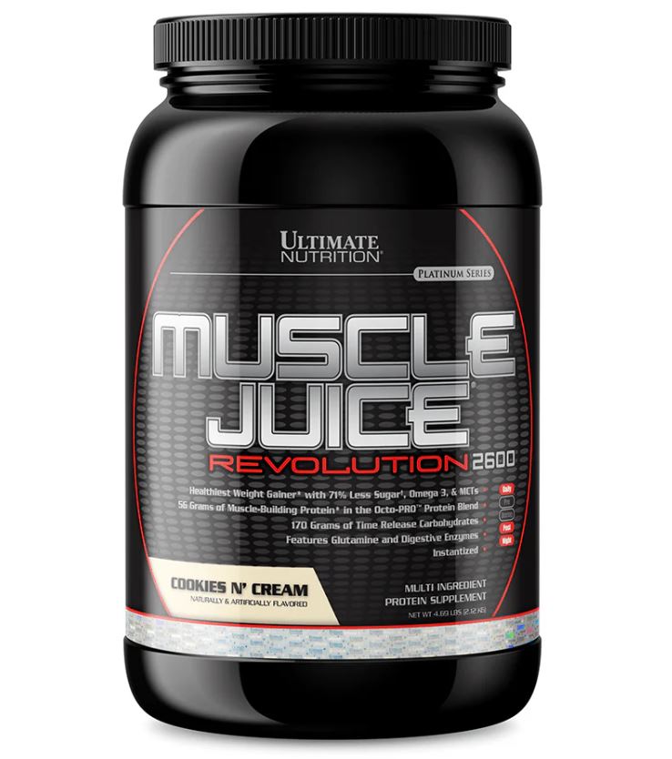 Новый Muscle Juice Revolution 2600 дает новую силу и мощь, причем очень легко! Каждая порция содержит 56 граммов высококачественного белка, быстрые углеводы, EFAs и антикатаболические добавки для сохранения и роста ваших мышц. Этот продукт гарантирует, что вы станете обладателем потрясающей объёмной и жёсткой мускулатуры, увеличите свою силу и энергию на тренировке! Испытайте на себе самый быстрый набор веса с Muscle Juice Revolution 2600! Muscle Juice Revolution 2600 содержит: на 71% менее сахара, чем Muscle Juice 2544; 56 граммов высококачественного протеина, исключительно состоящего из изолята белка; белковую смесь, которая содержит 8 различных протеинов; 170 самых быстрых углеводов для усиления работы дополнительно добавленного в продукт глютамина; пищеварительные энзимы; ненасыщенные жирные кислоты (омега-3, омега-6, омега-9 жирные кислоты).