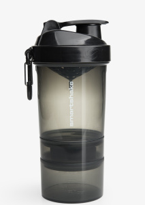 SmartShake Original2Go – шейкер три в одном, представляющий собой одновременно сосуд для смешивания и питья спортивных коктейлей, а также для хранения не только самого коктейля, но и капсул, таблеток и даже перекусов. Данный шейкер состоит из нескольких частей. Это шейкер, в котором смешивается и хранится спортивный коктейль. Причем получение однородного коктейля гарантируется съемной сеточкой, которая при встряхивании шейкера разбивает любые комочки и сгустки. В основание шейкера ввинчивается контейнер с четырьмя отсеками для капсул и таблеток и контейнер для перекусов вроде орехов, ягод или сухофруктов. Это очень удобно. Ведь вы получаете возможность носить с собой необходимые для приема таблетки и капсулы и даже имеете место для полезных вкусняшек, которые необходимы для организации полезного перекуса в пути или на работе.