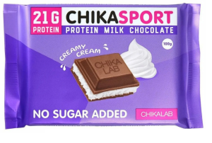 Новинка нежной линейки шоколада от CHIKALAB! Протеиновый шоколад теперь стал намного вкуснее и ярче, а именно из за сливочной начинки внутри. В составе шоколада Chikalab также осталась большая порция белка, на одну плитку 100г выходит 21 г белка ( жир 38г, углевод 11г - на одну порцию шоколада 100г 505 ккал). В шоколаде используется натуральное тертое какао, тает как натуральные шоколад как во рту - так и на солнышке :) Нежная начинка из сливочного и шоколадного крема, белок и клетчатка! Самое главное, что в шоколаде нет сахара - можно сочетать при ПП, замене сладостей и вредностей в рационе, добавлять в любимое блюдо или рецепт! Яркое и нежное наслаждение с шоколадом от Chikalab!