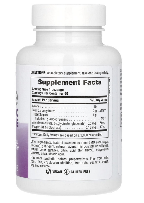 Натуральные подсластители (тростниковый сахар без ГМО, фруктоза), гуаровая камедь, натуральные ароматизаторы, микрокристаллическая целлюлоза, натуральный краситель (виноград), лимонная кислота (ароматизатор), стеарат магния, диоксид кремния, стеариновая кислота.