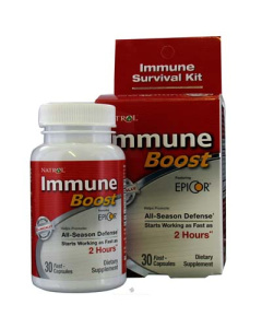 Immune Boost от Natrol - это передовая формула для поддержки иммунной системы на основе дрожжевого комплекса EpiCor. Было клинически доказано, что EpiCor повышает иммунную функцию путем увеличения активности иммунных клеток. Как показали клинические испытания, EpiCor Super Food помогает организму активизировать защитные функции иммунной системы. EpiСor способствует активации естественных киллеров - лейкоцитов, белых кровяных клеток, которые являются одной из основных действующих сил иммунной защиты организма. Также в состав Immune Boost от Natrol входят витамины (С и D3), селен и цинк, необходимые для нормального функционирования иммунной системы.