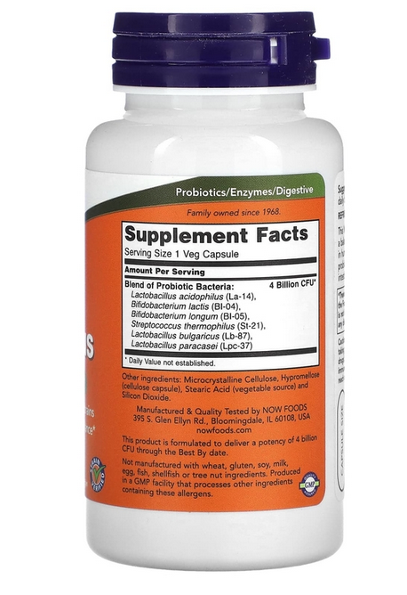 ацидофильные лактобактерии (L. acidophilus) (La-14), бифидобактерии лактис (Bifidobacterium lactis) (BI-04), бифидобактерии лонгум (B. longum) (BI-05), термофильный стрептококк (Streptococcus thermophilus) (St-21), болгарская палочка (L. bulgaricus) (Lb-87), лактобактерии параказеи (L. paracasei) (Lpc-37)