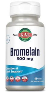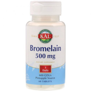 KAL Bromelain 500 мг (Бромелаин) может использоваться в двух целях как натуральный продукт, выделенный из природного источника. Это переваривание белковой пищи, включая протеиновые коктейли. Второй аспект – это лечение травм и воспалительных процессов, а также ожогов. Может применяться в комплексной терапии травм, включая спортивные. Используется для терапии гингивитов, стоматитов, ринитов, гайморитов. При травмах кожи может использоваться местно.