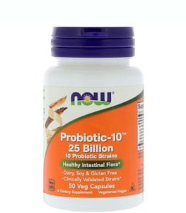 Смесь из 10 штаммов пробиотических бактерий: Ацидофильные лактобактерии (Lactobacillus acidophilus) (La-14), бифидобактерии лактис (Bifidobacterium lactis) (Bl-04), лактобактерии плантарум (Lactobacillus plantarum) (Lp-115), лактобактерии казеи (Lactobacillus casei) (Lc-11), лактобактерии рамнозус (Lactobacillus rhamnosus) (Lr 32), лактобактерии параказеи (Lactobacillus paracasei) (Lpc-37), бифидобакетрии бреве (Bifidobacterium breve) (Bb-03), термофильный стрептококк (Streptococcus thermophilus) (St-21), лактобактерии саливарус (Lactobacillus salivarius) (Ls-33), бифидобактерии лонгум (Bifidobacterium longum) (BI-05)