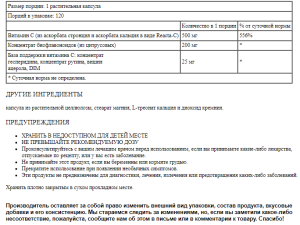 Продукт не является лекарственным средством и не предназначен для лиц моложе 18 лет, беременных и кормящих женщин. Перед приемом проконсультируйтесь с врачом. Не превышайте указанную дозировку. Меры предосторожности: хранить в недоступном для детей месте. Продукт не является заменителем пищи. Не следует превышать рекомендуемую дозировку. Производитель не несёт ответственности за любой вред, причинённый в результате ненадлежащего использования или хранения продукта.