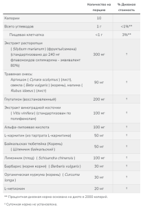 артишок (Cynara scolymus) (лист), свекла (Beta vulgaris) (корень), малина (Rubus idaeus) (лист), панкреатин (ферменты поджелудочной железы)